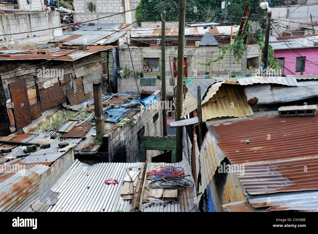 Techos De Hierro Corrugado El Esfuerzo La Circunscripcion De Tugurios Es Controlada Por El Rival De Pandillas De Jovenes Maras Zona 5 Ciudad De Guatemala Fotografia De Stock Alamy